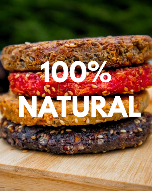 La única Veggie Burger 100% natural, hecha con verduras seleccionadas y frescas, legumbres de primera, hierbas naturales y semillas tostadas.